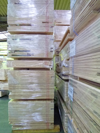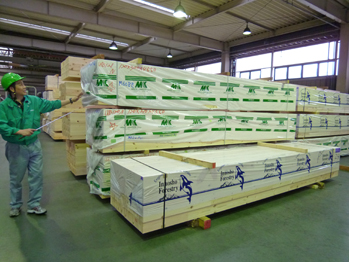加工が終わりビニールのパックされた材料が、発送を待っています。