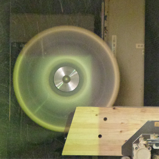 傾斜屋根につかう登り梁用の加工機。削りながら仕口の形状を作り、最後に丸鋸で中央の切れ込みを入れます。「切る」のではなく「削る」という発想が面白いです。