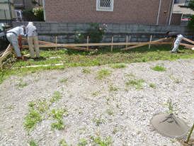 地縄確認(配置の確認)と近隣挨拶を済ませたあと、建て主の方と打合せをし、ランチをご一緒して帰りました。