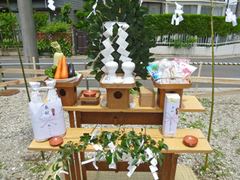 台風4号が通り過ぎた今日、青空が広がった下で『カフェのある家(朝霞市)』(SE構法3階建)の地鎮祭を行いました。