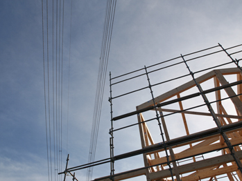 上空(約22m)には東京電力の高圧送電線(15万ボルト)が通っていて、クレーンの高さを17m以下に抑えて工事しなければいけない、特殊な地域でした。