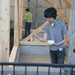 大工さんの息を合わせた連携で、3階の床合板がてきぱきと貼られていきます。