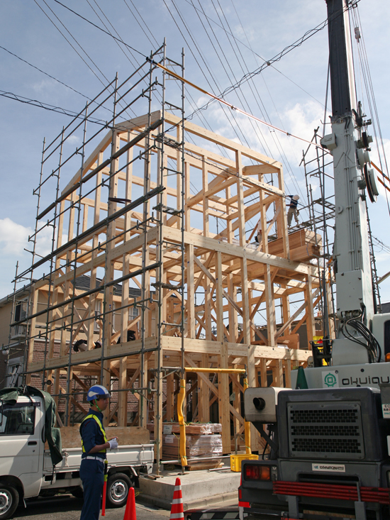 建て主の方は、今までは図面や模型で想像するしかなかった ”我が家” が、現実の物として立ち上がっていく様子を、朝から夕方までじっくりご覧になられました。