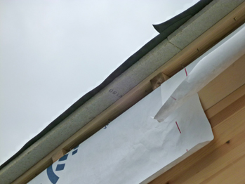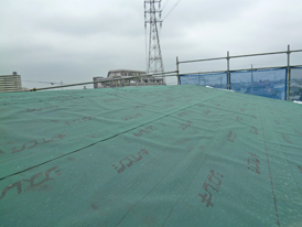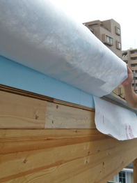 屋根の下地まで出来ていたので、上に登り確認して帰りました。傾斜屋根は外断熱(ポリスチレンフォーム厚65)の通気工法で、付加断熱として屋根裏面にもグラスウール16K・厚100を入れます。(次世代省エネ基準、等級4)