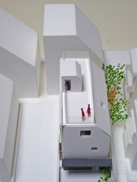 前回の打合せで、LDK(リビング)は2階にすることに決まったので、今回は2階LDK案のバリエーションを6案つくり、打合せ伺いました。また、ここ数ヶ月で完成した西側敷地の建物を加えた敷地模型をお見せし、屋上テラスからの眺望が期待できる方向を具体的にお話ししました。