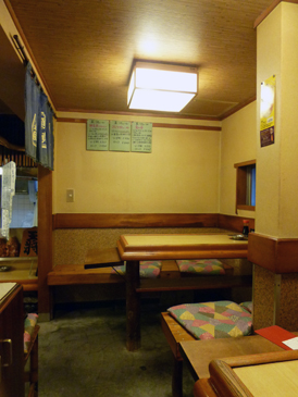 魚貞(うおさだ)に入り、よく通されるのが一番奥にある一段上がったスペース(左写真)。ここは、天井の高さが1.9mぐらいの囲まれた場所なのですが、小さなスペースならではの落ち着きと気持ちよさを感じる場所です。