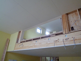 ダイニングキッチンの上部と子供室が、スキップフロアの床段差を利用した、高さ70センチ程度の開口でつながっています。現在、ここに付ける格子の形状を再検討しているため、キッチンや子供室からの実際の見え方を確認しました。