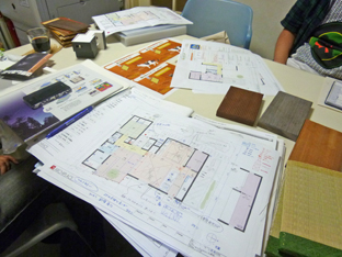 現時点(基本設計中)での打合せは、最終的な仕上げを決める訳ではなく、実際の材料をお見せすることで、建て主の好みを伺い、空間のイメージをより膨らませていくことを目的としています。材料選びにおいては、材料の種類と同時にその材料の特徴、費用やメンテナンスのこともお話しするようにしています。