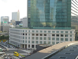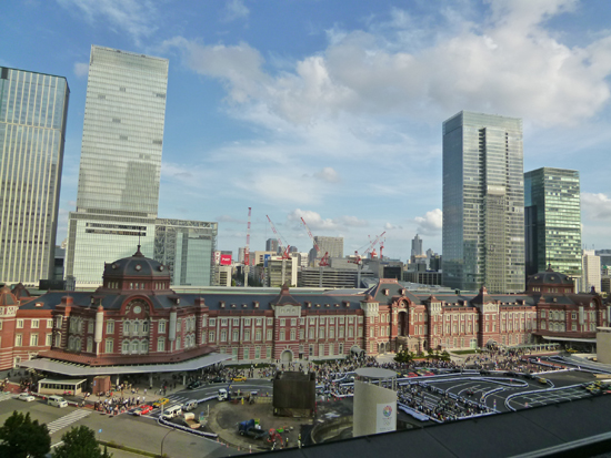 向かいの新丸の内ビルディングのテラスからは、東京駅赤レンガ駅舎の全景を見ることができます。
