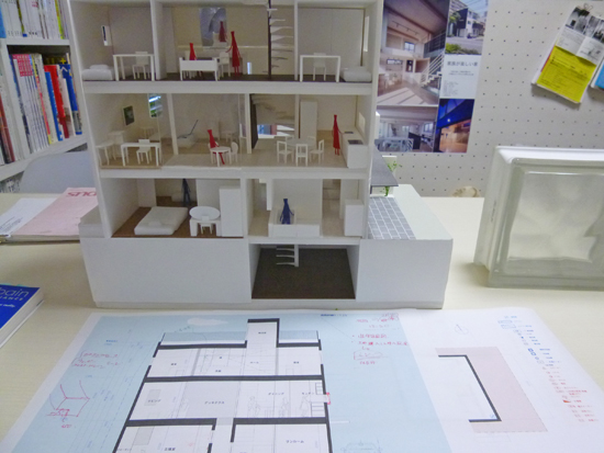 基本設計が終盤を迎えている住宅『ひかりを組み込む家』(地下RC+SE構法3階建)の建て主の方との打合せを、アーキプレイスの事務所で行ないました。