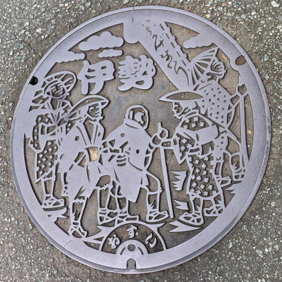 お伊勢参りがデザインされたマンホールの蓋を発見!