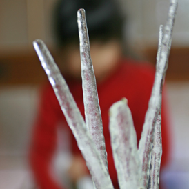 広島県三次市は例年になく寒い日が続き、毎朝氷点下となり雪も散らつきました。
