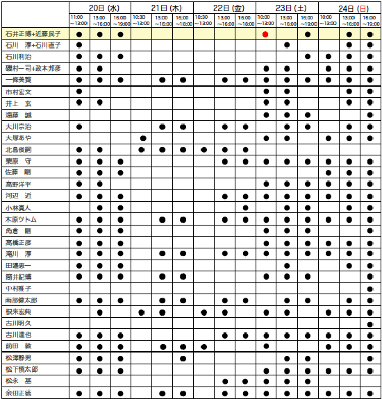 設計事務所アーキプレイス[石井・近藤]は20(祝)、23(土)夕方、24(日)午後に加え、23(土)午前中も会場にいることになりました。