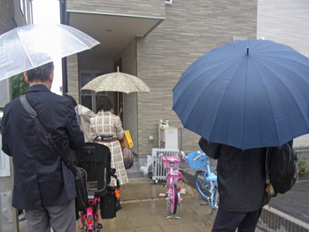 地縄による建物の配置確認を済ませ、建て主の方、施工会社の方と一緒に近隣挨拶も行ないました。