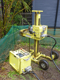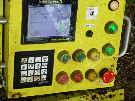 スエーデン式サウンディング試験(SS試験)の機械も進化していて、地面に針(ロッド)を差し込みながら、地盤の強さの目安となるN値がモニターに表示されます。