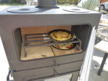 オーブン付きストーブでは、ピザを焼いていただきました。