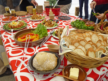 お昼のバオベキュー。オーブン付き薪ストーブで焼いたパンのほか、とっても美味しい料理を堪能。空気もキレイで最高に気持ちのいいランチでした。