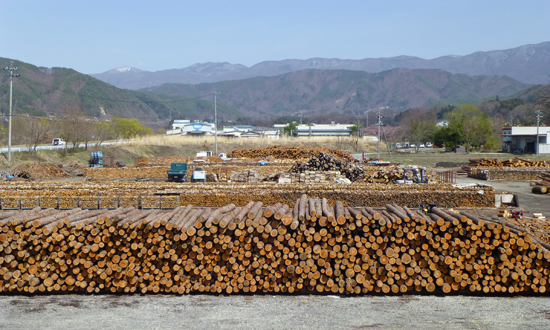 長野県のカラマツやアカマツを中心に、地産地消となる薪が大量につくられます。間伐材(かんばつざい)という言葉から受けるイメージからはほど遠い、直径30センチぐらいの原木もあり、驚きました。