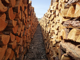 原木〜薪が敷地内で一年かけて乾燥されます。