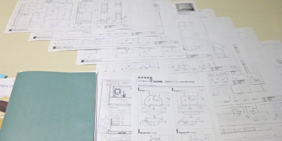 週末、基本設計をまとめて製本したものをお渡しし、まずは家具から1/20の図面をもとに、実施設計の打合せを始めました。