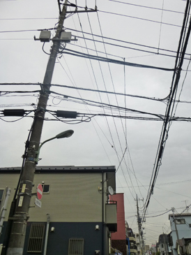 住宅を設計していると、ときどき電柱の位置や電柱を支えている支線の位置が問題になることがあります。玄関のへのアプローチや、車の出入り口に邪魔になったり、せっかくの見晴らしの妨げになったりするためです。電柱や電線は電気の供給や通信という生活に必要不可欠なインフラの為の設備なので、直ぐになくすことはできないと思いますが、景観的には決して美しいものではありません。美しいの街並みの景観のためにも、欧米に習い電線等の地中化(無電柱化)を早く進めてもらいたいものです。