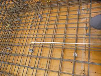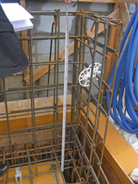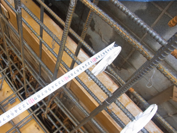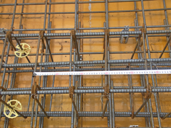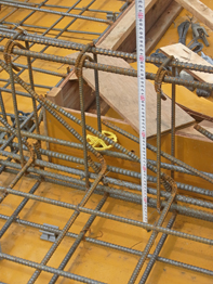 隅角部補強筋 4-D16(左写真の壁のコーナー部分に写っている鉄筋)