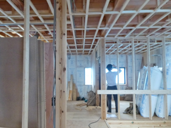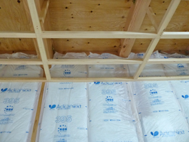 2階の天井にも断熱材が入り始めました。断熱材の施工は非常に丁寧に気密の考えも十分理解されて施工されています。