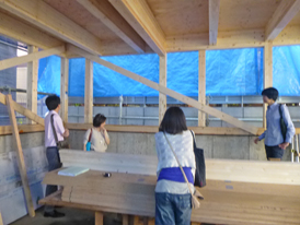 『ひかりを組み込む家』の建て主の方を、上棟(6/19)から一週間が経った現場にご案内しました。