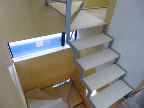 この住宅には3種類の階段がありますが、下地までの施工が終わりました。