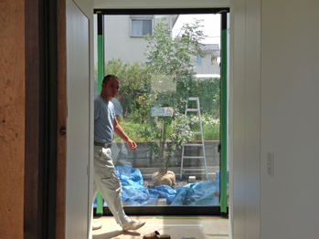 完成まであと少しとなった『猫と暮らす中庭のある家』には、家具屋さん、植木屋さん、エアコン屋さん、カーテン・ブラインド屋さんが入っています。この現場では、現場監督さんの「段取り」がすばらしく、余裕をもって仕上げ工事に入っていて、職人さんたちのの笑顔に ”心のゆとり” が感じられるように思います。