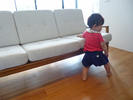 リビングのソファとダイニングのテーブル・イスが運び込まれると、部屋の雰囲気がぐっと「すまい」になったように感じます。購入家具は基本設計中に既に決まっていた、60年代の復刻版の家具で、奇をてらわない落ち着いた雰囲気を漂わせる、座り心地の良いものです。設計中に誕生したお子さんは大きくなり、イスの下にもぐったり伝い歩きして、家具が気に入ったようでした。
