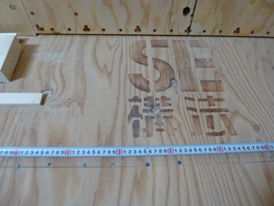 3階のバルコニーには、屋根面にブルーシートを2重に掛けて雨で床合板が濡れないようにしています。