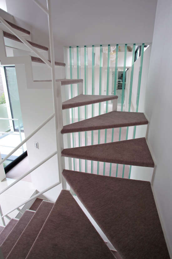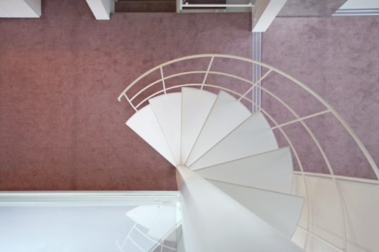 屋上テラスへの螺旋階段見下ろし。