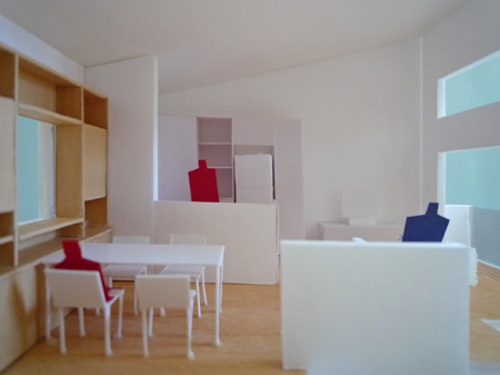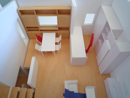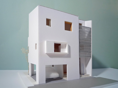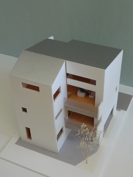 図面作成とともに1/50の模型を作り、3次元の空間として窓の大きさや、仕上げなどを検討しています。建て主の方にも見ていただき、これからより具体的に打ち合わせをしていく予定です。