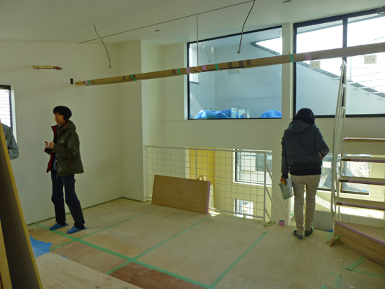 『十字路に建つスキップハウス』は工事の最終段階に入り、完成前の事務所検査を行ないました。