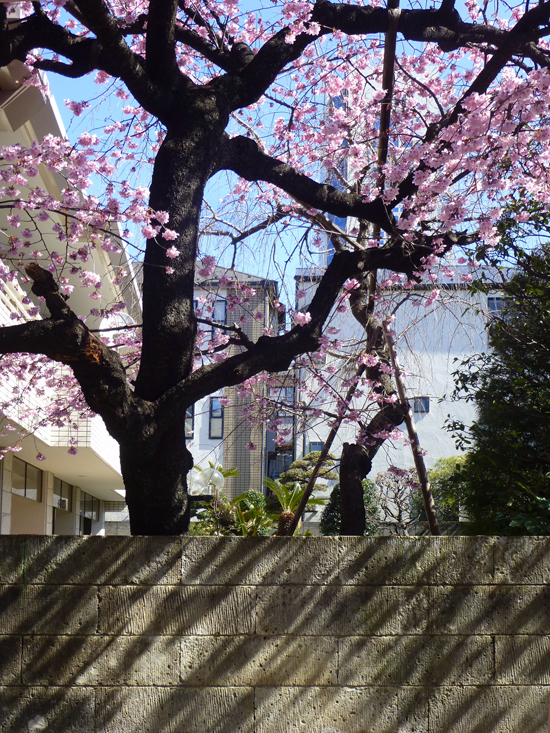 「初台の一番桜」と勝手に呼んでいる、アーキプレイスの事務所の近くの寒桜(熱海桜)が、今年もほぼ満開になりました。
