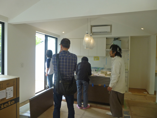 連休中日(4/29)に、お引き渡し前の『緑あふれるアトリエのある家』の現場を建て主の方にご覧いただきました。