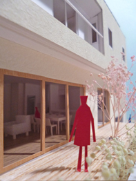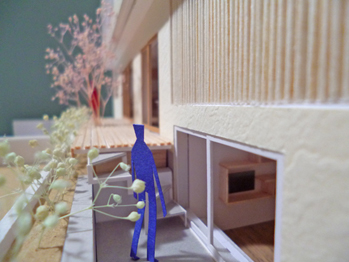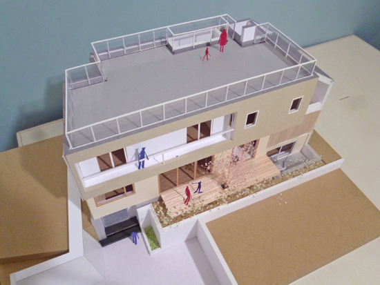 現在、見積り調整とともに景観条例、地区計画、風致地区の届出準備をしている、混構造の住宅、『太陽の光を感じる家』(地下RC+地上SE構法2階建)の1/50模型ができました。