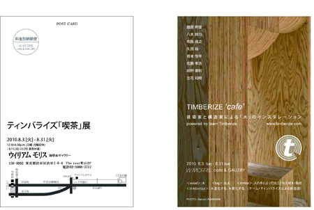 ティンバライズ「喫茶」展が、8月31日まで、東京・渋谷のウイリアム モリス珈琲&ギャラリーで開催されています。