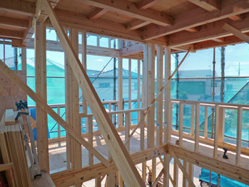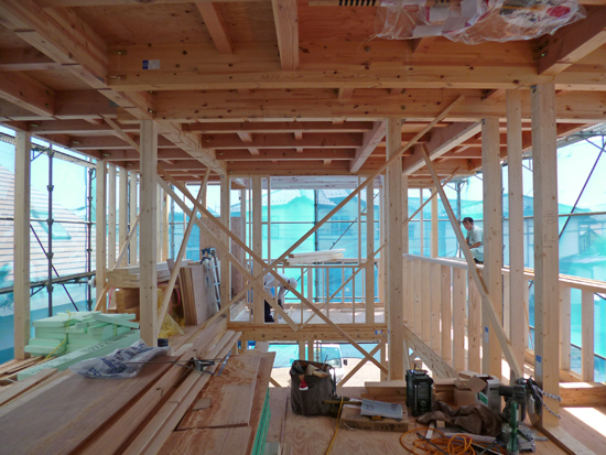 お盆休み前(8/11)の『くるりのある家』(木造2階建て、在来工法)の現場監理。