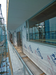 軒天(のきてん)が貼られました。外壁左官との取り合いとなる、軒先の金物などキレイに施工されています。