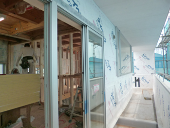 『くるりのある家』(木造2階建、在来工法)の現場監理。階段の下地や、軒天の施工が終わり、1階ではユニットバス(システムバスルーム)が組み立て中です。