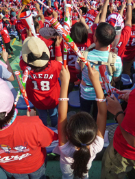 9回にはファンのホームランコール通りに、エルドレッドの36号ホームランが飛び出す、7対2でのカープの快勝でした。娘(7歳)も、同級生の男の子に教えてもらった応援歌を口ずさみながら、赤いファンに混じって始終ノリノリで応援。「カープ少女」としての一日を楽しんだ様子でした。
