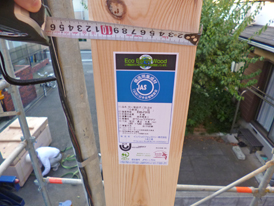 柱や梁の大きさや材種が設計図面やプレカット図通りになっているかチェック。