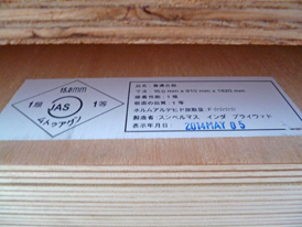 床合板(構造用合板、厚さ28mm)の種類や厚さ、釘ピツチ、屋根の下地合板(接着性能:1類(耐水)、ホルムアルデヒド放散量:F☆☆☆☆)などを確認。