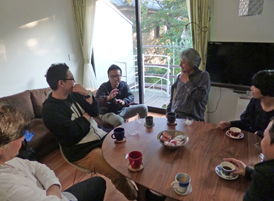 撮影を終えて、みんなでコーヒーを頂きながらしばし談笑。和やかな雰囲気の取材になりました。Fさん、ありがとうございました。「建築家31会・会場イベント委員会」の皆さん、お疲れさまでした。