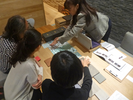 メーカーの方から、塗装の違いによる汚れやキズのつき方の違い、普段のお手入れ方法(メンテナンス)、陽射しや経年による色の変化など、詳しく説明していただきました。