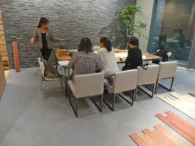 週末(11/2)『室内化したテラスを持つ家』(木造3階建・SE構法)の建て主の方と、東京・青山にあるフローリングメーカーIOC(アイオーシー)の東京ショールームへ行きました。