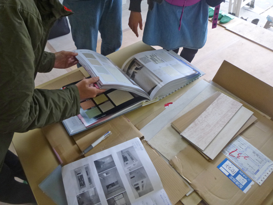 [左]大工さんの造付け家具の工事が進んでいます。