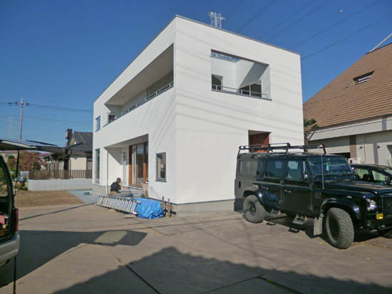 足場が取れた外観は、まぶしいくらい白いです。東と南面は左官仕上げ。
